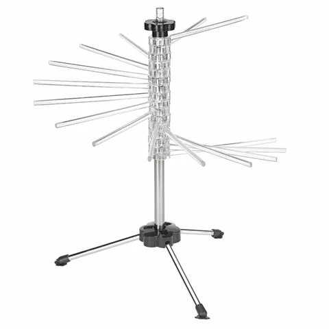Think of Avanti’s Pasta Drying Rack as a clothes line for your pasta and the essential tool for drying your freshly made pasta. The rack promotes fast and even drying and holds up to 1.8kgs of fresh pasta It features 16 individual polycarbonate arms that rotate so they can be staggered for maximum drying space, accommodating long strands of pasta to meet your needs. Simply turn the knob at the top and the rods will fan out.