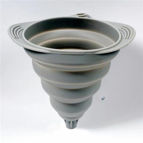 Take the mess out of pouring liquids, powdered ingredients, grains, spices and more into bottles or containers with Avanti’s Collapsible Funnel. Crafted from food grade silicone, it features a wide mouth with handles for easy pouring and a stepped structure that keeps in place when in use. This innovative funnel easily expands for use and collapses in on itself for compact storage.