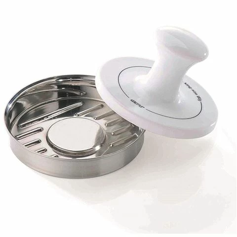 Make hamburgers the easy way with the Spark Hamburger Press. Just press the desired quantity of minced meat or another mixture into the stainless steel dish and shape it with the porcelain plunger. Take the burger out and fry it in the pan or on the barbecue. Thanks to the dimple in the stainless steel dish, the burger keeps its shape, and the ridges in the plunger make sure it cooks fast because few can resist the aroma of burgers on the grill.