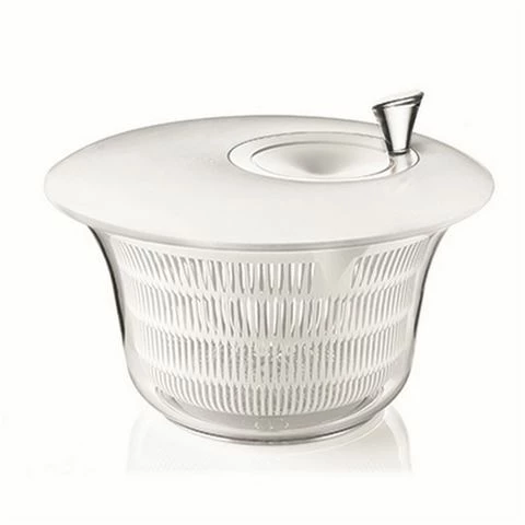 A salad spinner with a non slip base, making it perfect for serving salads or vegetables directly from the bowl. Features an ergonomic grip and a raised basket so food does not remain wet.