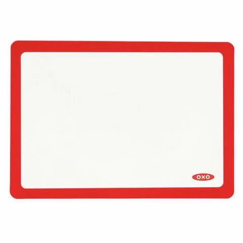 Whether you’re baking batches of chocolate chip cookies or roasting lemon chicken, you can transform your baking sheets or roasting pans with the OXO Good Grips Silicone Baking Mat. Ideally sized for half-sheet pans, this reusable, food-safe silicone Mat replaces parchment or waxed paper and easily withstands dough, grease and other cooking residue. Fiberglass and silicone construction provide structure and durability. Dishwasher safe.